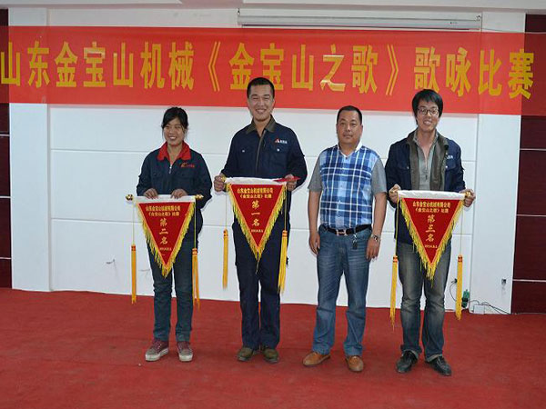 房士奎總經(jīng)理對(duì)獲獎(jiǎng)隊(duì)伍進(jìn)行頒獎(jiǎng)并發(fā)表了講話,房總說(shuō),在當(dāng)前生產(chǎn)任務(wù)比較繁重的情況下開(kāi)展歌詠比賽,一是緩解員工精神壓力,二是鼓舞斗志,凝聚人心,三是豐富職工文化生活,希望大家在生產(chǎn)中要像歌中唱的一樣,牢記“憨孝誠(chéng)”的企業(yè)文化理念,打造精品闖世界,珍惜金寶山的品牌,為客戶提供最完美的破碎機(jī)?!   ?BR style="FONT-FAMILY: ">    通過(guò)本次比賽,鼓舞了員工斗志,凝聚了團(tuán)隊(duì)力量,進(jìn)一步激發(fā)了廣大干部員工的工作熱情和干勁。