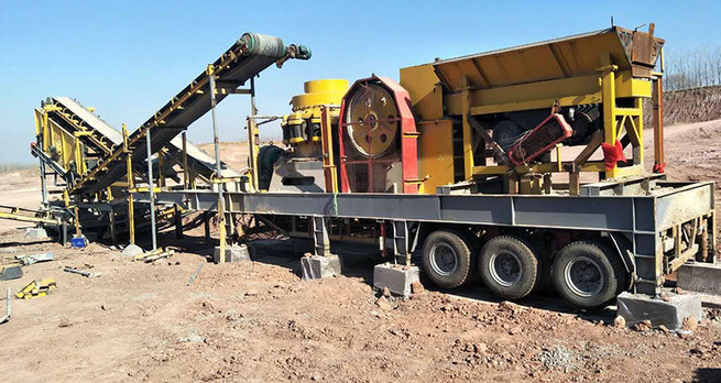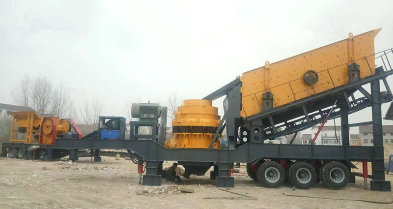移動式破碎站主破碎設備為破碎機,物料經(jīng)給料機均勻輸送到破碎機內(nèi),被破碎機初步破碎以后由圓振動篩構成閉路系統(tǒng),實現(xiàn)物料的循環(huán)破碎,符合粒度要求的物料由輸送機輸出,從而達到生產(chǎn)目的。移動式破碎站還可以根據(jù)實際生產(chǎn)需要去除圓振動篩,而直接對物料進行初步破碎,然后配合其他破碎設備進行具體的操作,方便、靈活。