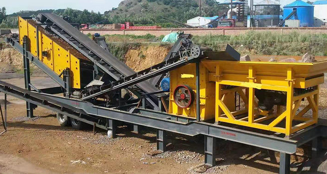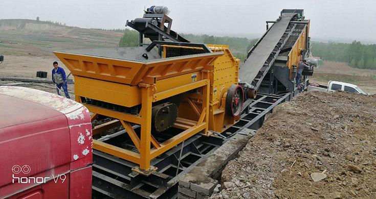 移動(dòng)式破碎站主破碎設(shè)備為破碎機(jī),物料經(jīng)給料機(jī)均勻輸送到破碎機(jī)內(nèi),被破碎機(jī)初步破碎以后由圓振動(dòng)篩構(gòu)成閉路系統(tǒng),實(shí)現(xiàn)物料的循環(huán)破碎,符合粒度要求的物料由輸送機(jī)輸出,從而達(dá)到生產(chǎn)目的。移動(dòng)式破碎站還可以根據(jù)實(shí)際生產(chǎn)需要去除圓振動(dòng)篩,而直接對(duì)物料進(jìn)行初步破碎,然后配合其他破碎設(shè)備進(jìn)行具體的操作,方便、靈活。